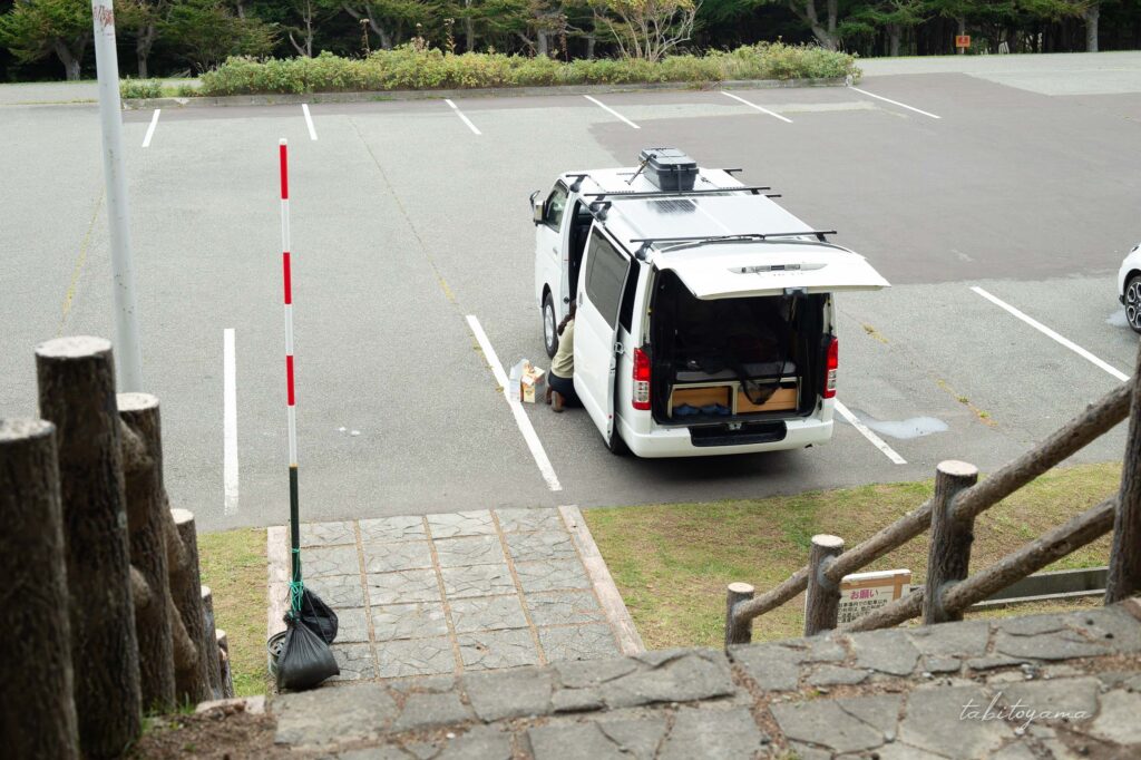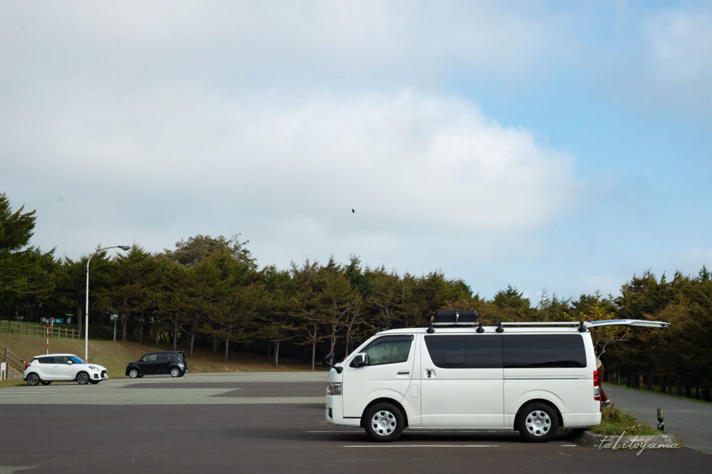駐車場はフラットなので、車中泊にも向いています。というかここは車中泊に大人気なイメージが強く、夏は長期旅っぽい圏外ナンバーがよくいますね。