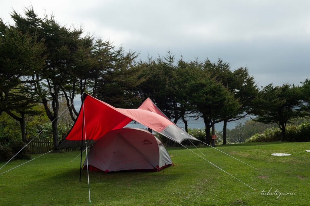 駐車場そばにあるトイレ周辺には、拓けた区画もあります。一部からは宗谷湾を見渡すことができるので、いい場所が確保できればロケーションは良さそう。夜は夜景も綺麗に見えます。