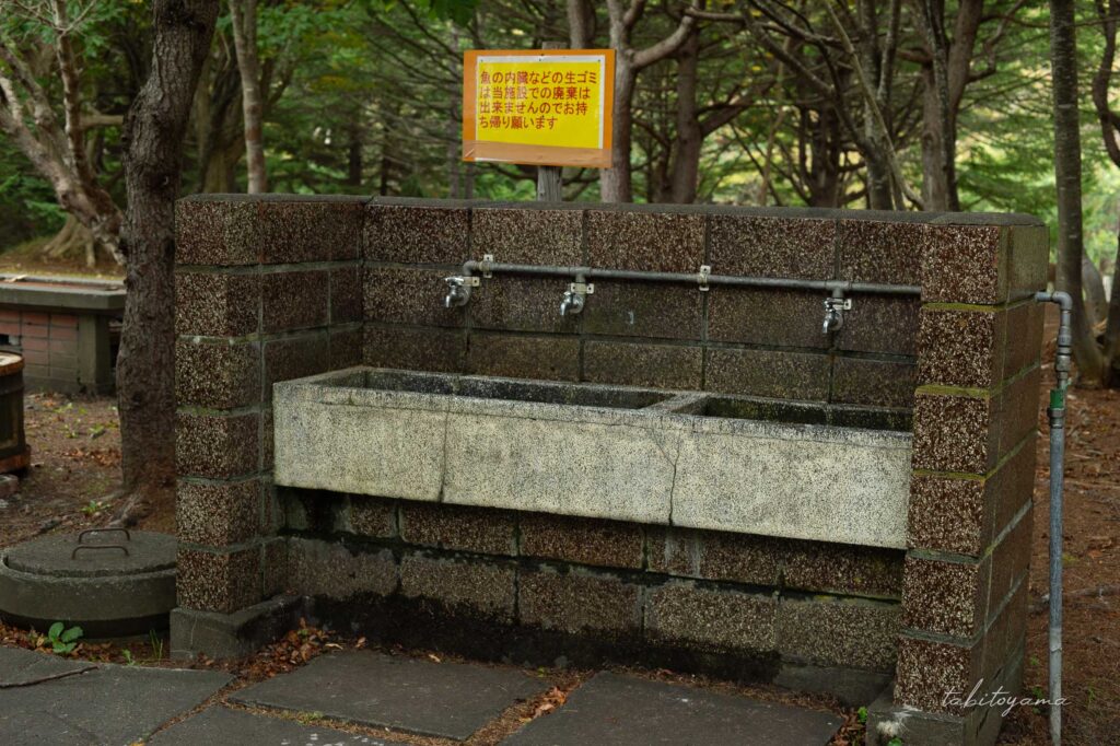 南側にはもう一つ簡易的な洗い場があります。水場が複数箇所あるキャンプ場は、サイト選びの選択肢が広がって地味にありがたい。