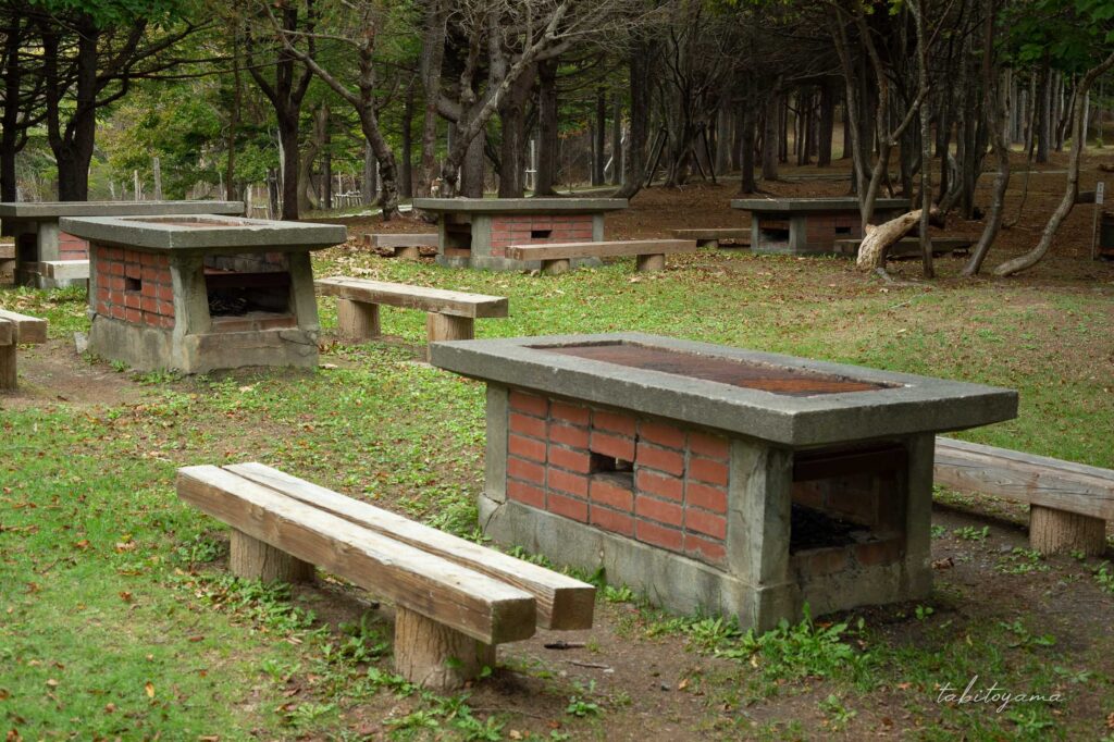 バーベキューテーブルもあり、炭と網を持ち込むだけで手軽にBBQも出来ます。
