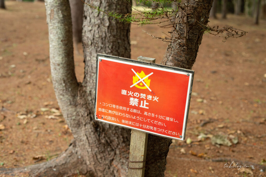 直火での焚き火は禁止されています。焚き火台と地面を保護できるシートを用意しておきましょう。