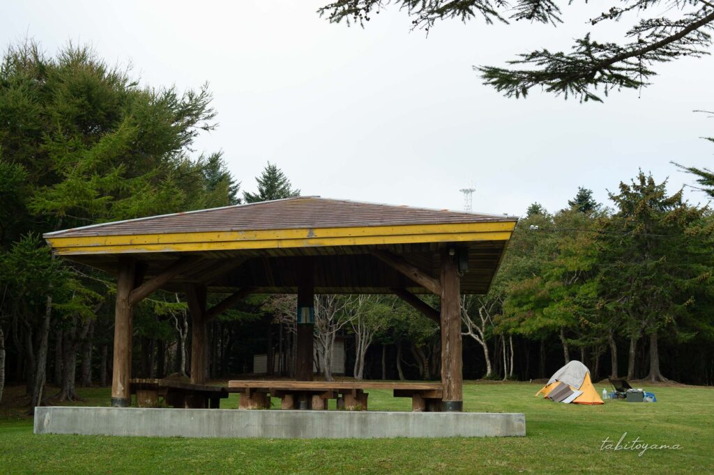 東屋は敷地内に合計で4カ所あり、どれも立派な造りでしっかりと雨が凌げます。寝袋マットだけでも十分眠れるので、徒歩やチャリダーなど旅人には嬉しいポイント。