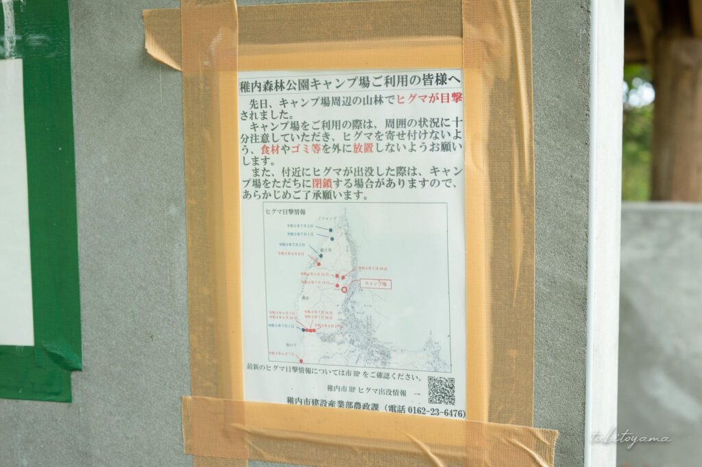 稚内周辺でもたくさんの熊の目撃情報があります。熊が出没したらその年は閉鎖となり、シーズン終わりを待たずに利用できなくなる可能性があります。