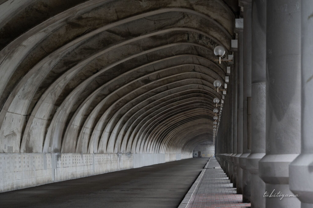稚内の撮影スポットで外せないのが、稚内港北防波堤ドーム。古代ローマ建築を彷彿とさせる半アーチ式のドーム状の防波堤です。北海道遺産にも認定されている歴史的な建造物です。